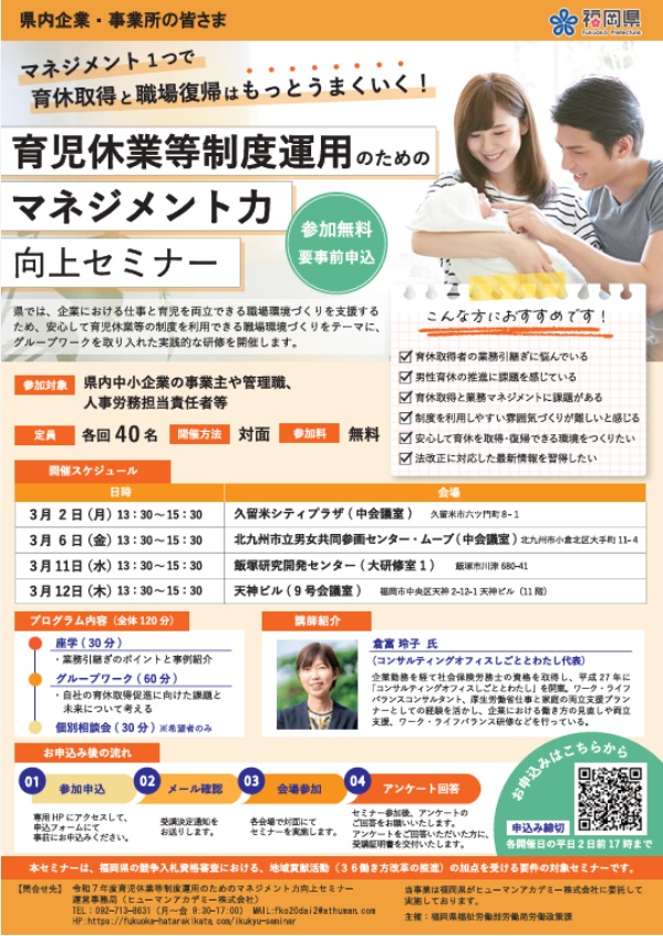 育児休業等制度の制度運用のためのマネジメント力向上セミナーを開催します!